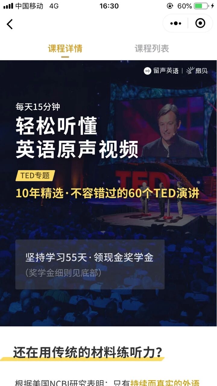 再附一张竞品课程的,我看几乎所有的在线教育类的小程序,都是保留了课程介绍,去掉购买button。