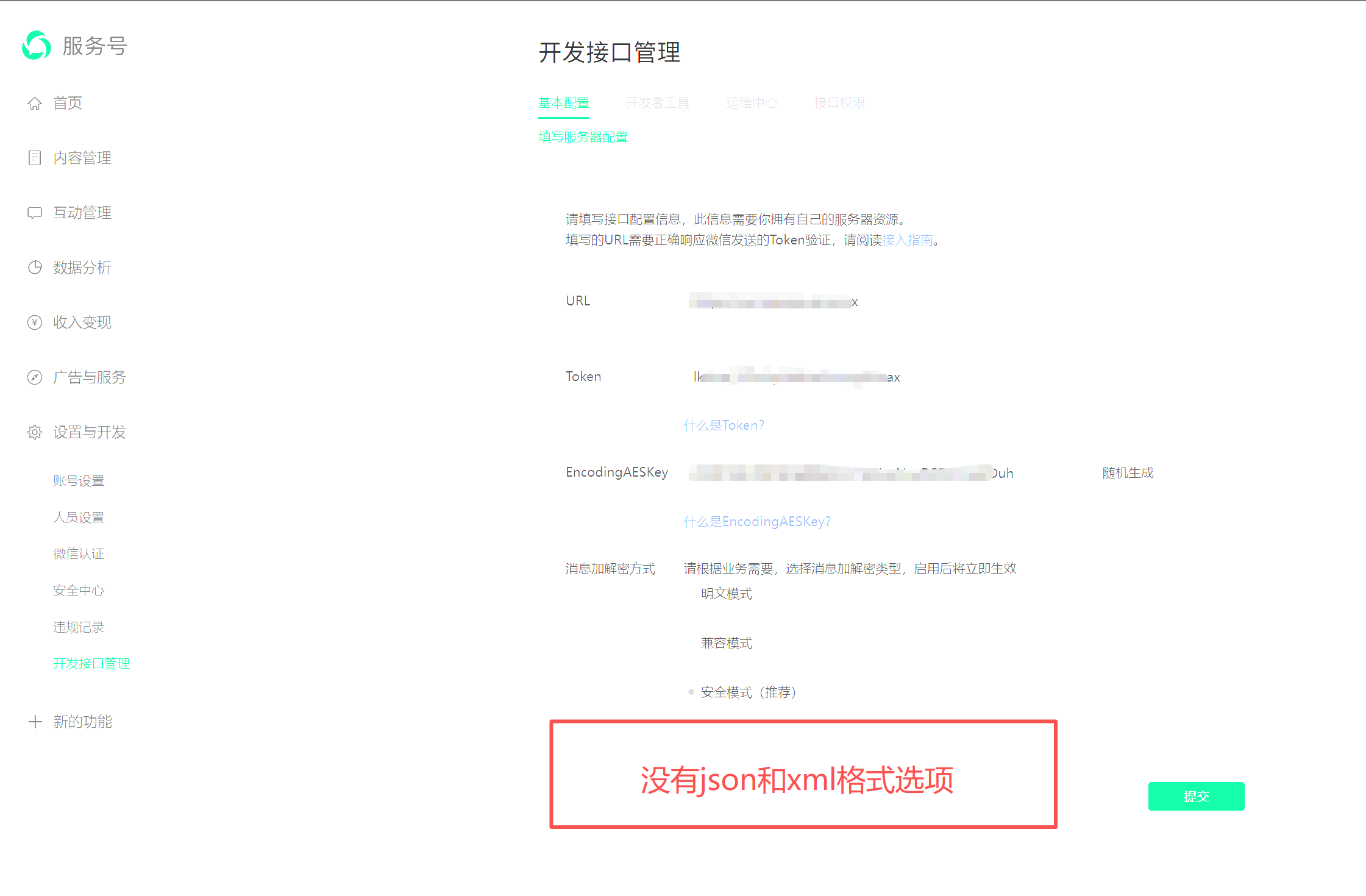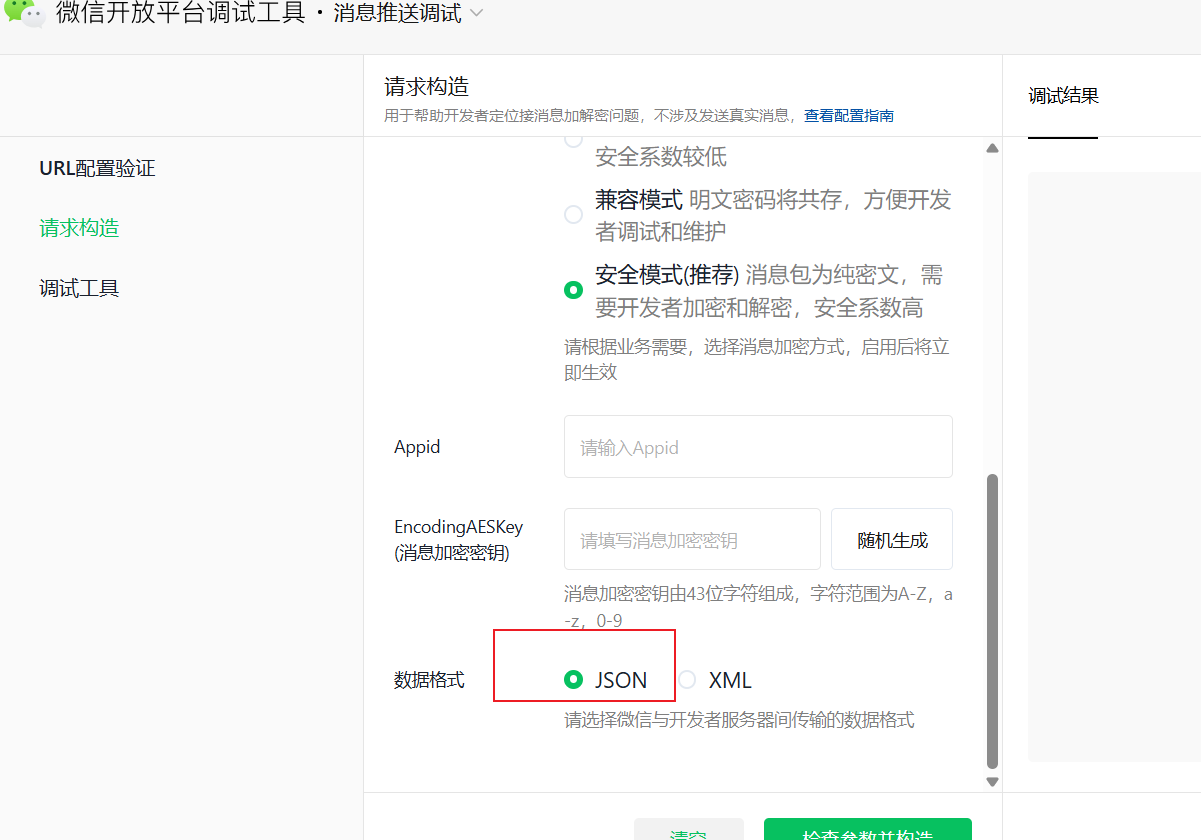 公众号消息推送格式怎么设置为JSON,我看文档里写的可以设置为JSON格式