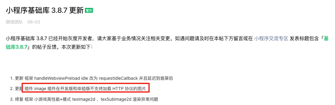 什么情况,我看https://developers.weixin.qq.com/miniprogram/dev/component/image.html组件说明也没说必须是https啊。 这种改动太突然了。