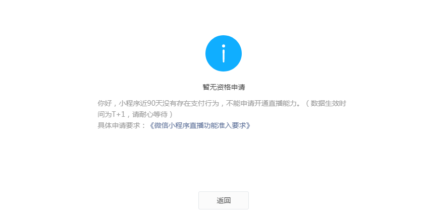 企业公司的小程序90日内存在支付行为却无法申请小程序直播