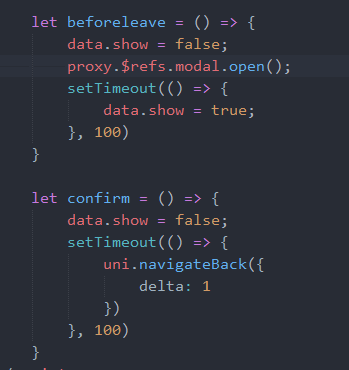 这样就解决了,也能阻止ios点击多下返回或者滑动多次返回导致不确认然后直接返回的问题
