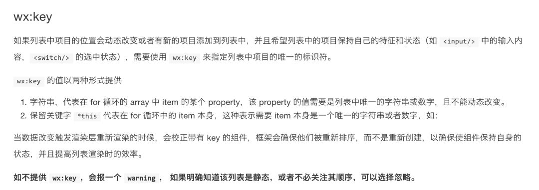 VM743:3 Now you can provide attr "wx:key" for a "wx:for" to improve performance.