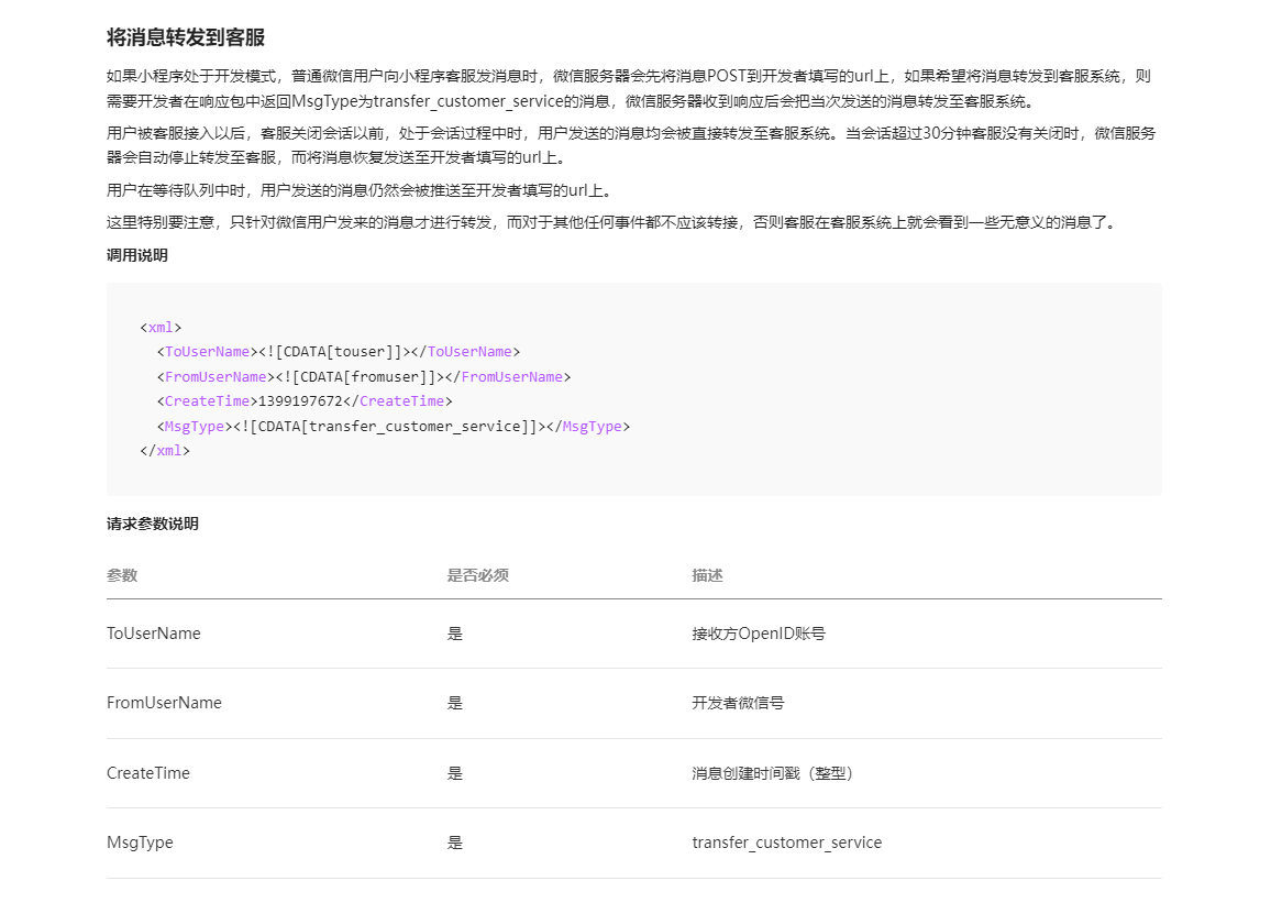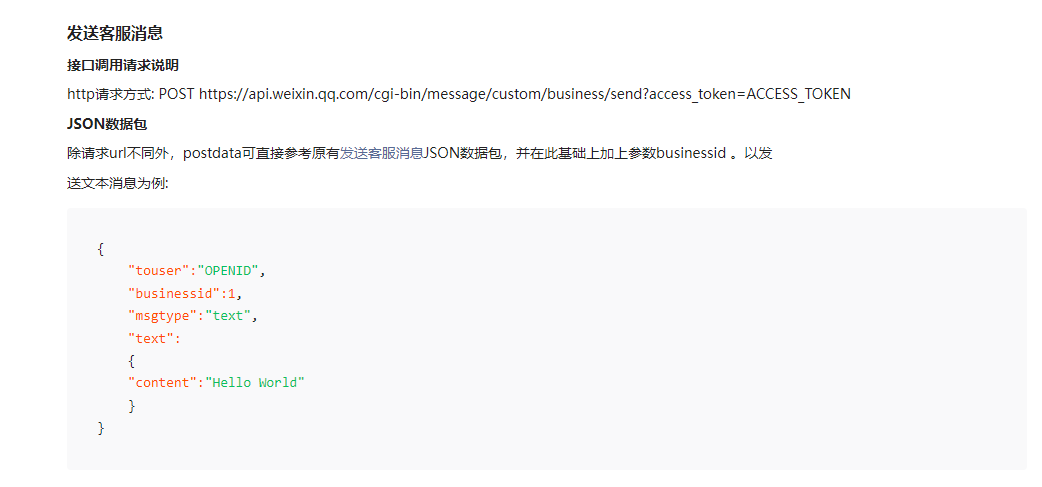 上面的接口是好理解的,这个时候如果没猜错的话,touser应该是消息的来源的FromUserName表示消息是谁发的,问题就在businessid里面,看第一个问题,没法把客服和businessid绑定啊!