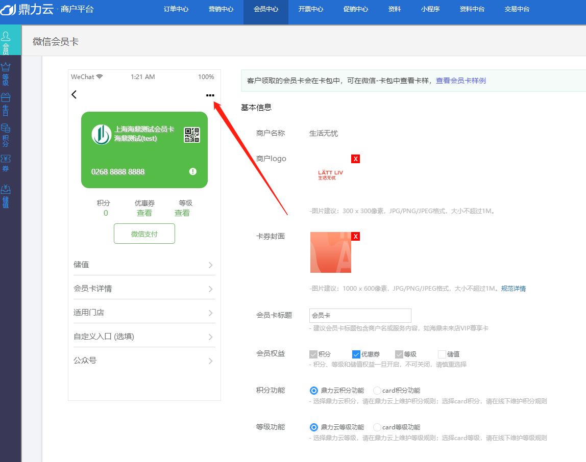 如图,维护公司旧项目,公众号后台将卡包会员卡的配置授权给了第三方平台,但是在第三方平台的可视化配置界面,还有开发文档的可配置api参数中都没有找到,关于这右上角三个点的配置项,怎么配置?