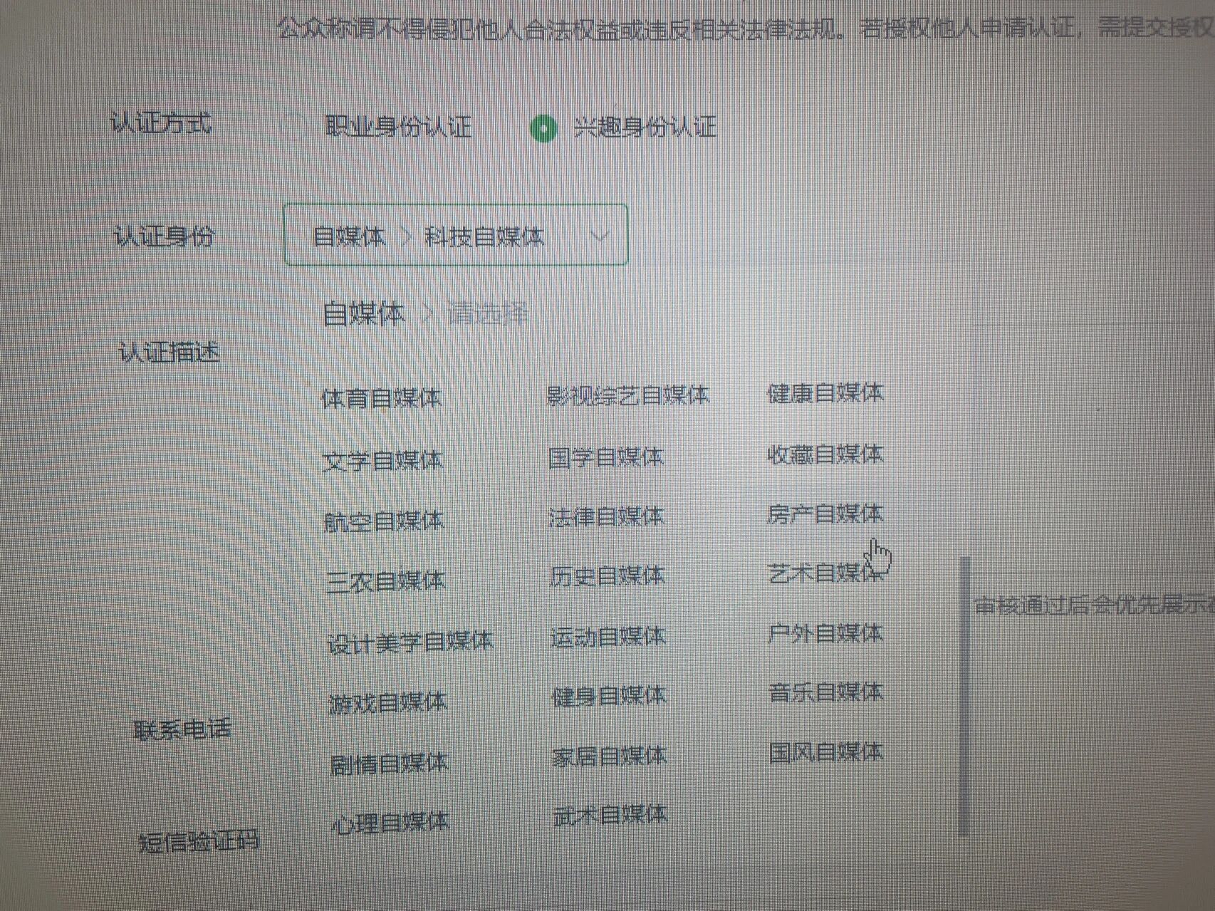 提问,个人公众号认证,想认证互联网自媒体,但没有这个选项,需要怎么处理呢? 还是需要达到什么样的具体条件