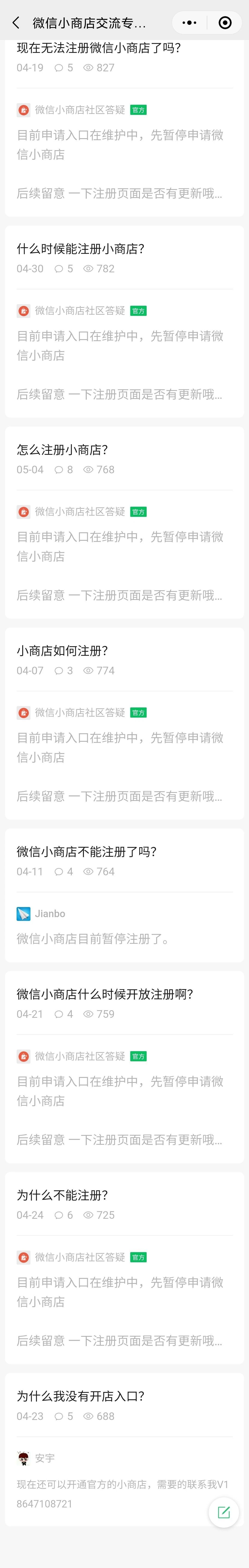 微信小商店经过这两年的发展,本身已经很完善,很好用,希望继续保持!对于不以直播为主的卖家,比视频号小店好用的太多!(直播卖货当然还是视频号) 不过最近很少发公告了。下面几个问题几乎每天都有人问(特别是第一个),建议在助手首页上加个说明,或者发公告。 1,微信小商店何时恢复新用户注册。 2,小商店的小程序,何时恢复检索(其他小程序都能搜到,就微信小商店的企业店搜不到,说是在进行评估)。 3,第三方服务插件,何时恢复可以按年交费?最近变成最长3个月了,麻烦,而且相当于价格贵了。