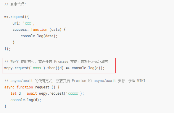wepy.request 看到文档感觉更像axios这样 在then中接受 请求回来的数据,, 但是在使用中发现 还是要success中获取