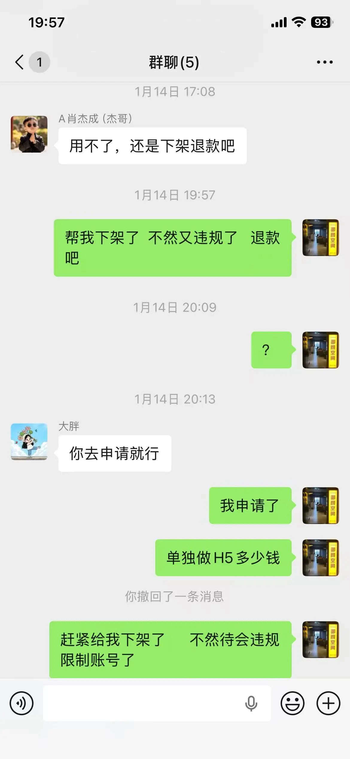 商家找深圳市快一步科技有限公司咨询上门按摩花的1980元钱搭建小程序还没上被官方强制下架不支持退款?