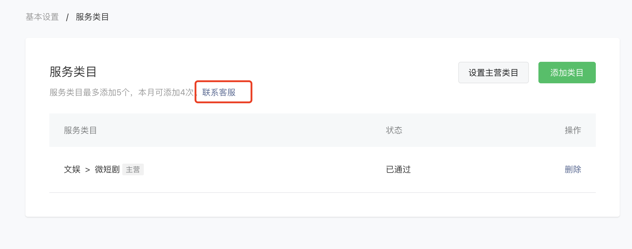 登陆【微信公众平台】-【小程序基础信息页】-【服务类目详情页】-点击【咨询客服】输入【转人工】