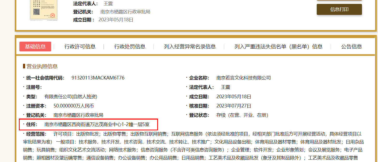 这是你的地址:南京市栖霞区西岗街道万达茂商业中心1-2幢一层5室