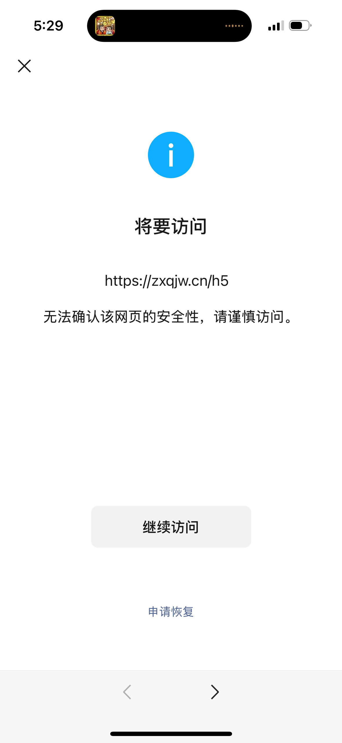您好,域名(zxqjw.cn),教务服务网站,域名在阿里云注册并备案,微信访问网站出现“无法确认该网站的安全性,请谨慎访问”,经检查网页里没有不安全的内容,也部署了SSL证书,申请恢复无效,请核实后帮忙解除拦截,谢谢!,截图时间,2025年7月31日