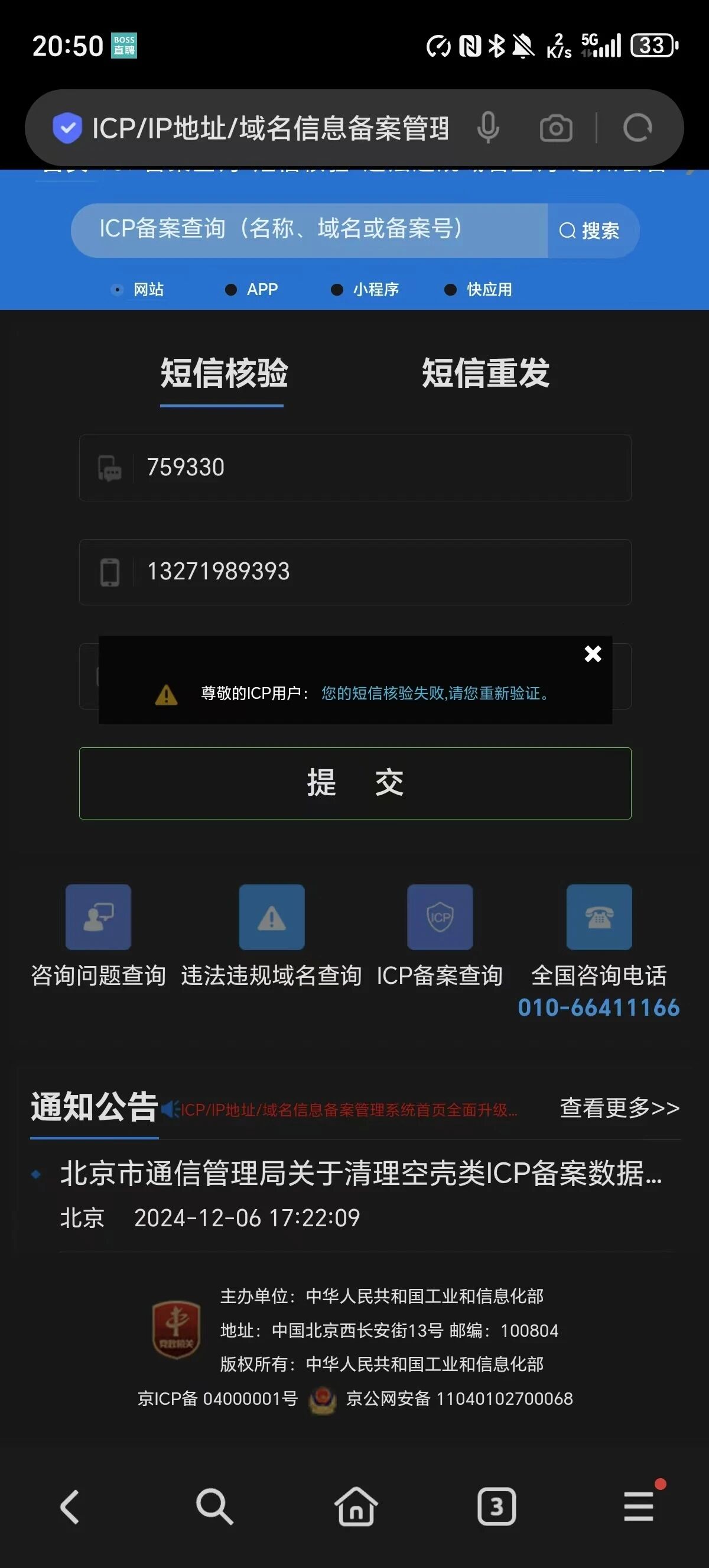 请教一个问题再工信部备案的时候验证不了是怎么回事