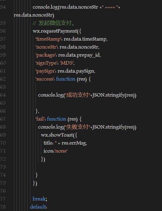 失败支付{"errMsg":"requestPayment:fail:调用支付JSAPI缺少参数: total_fee"}