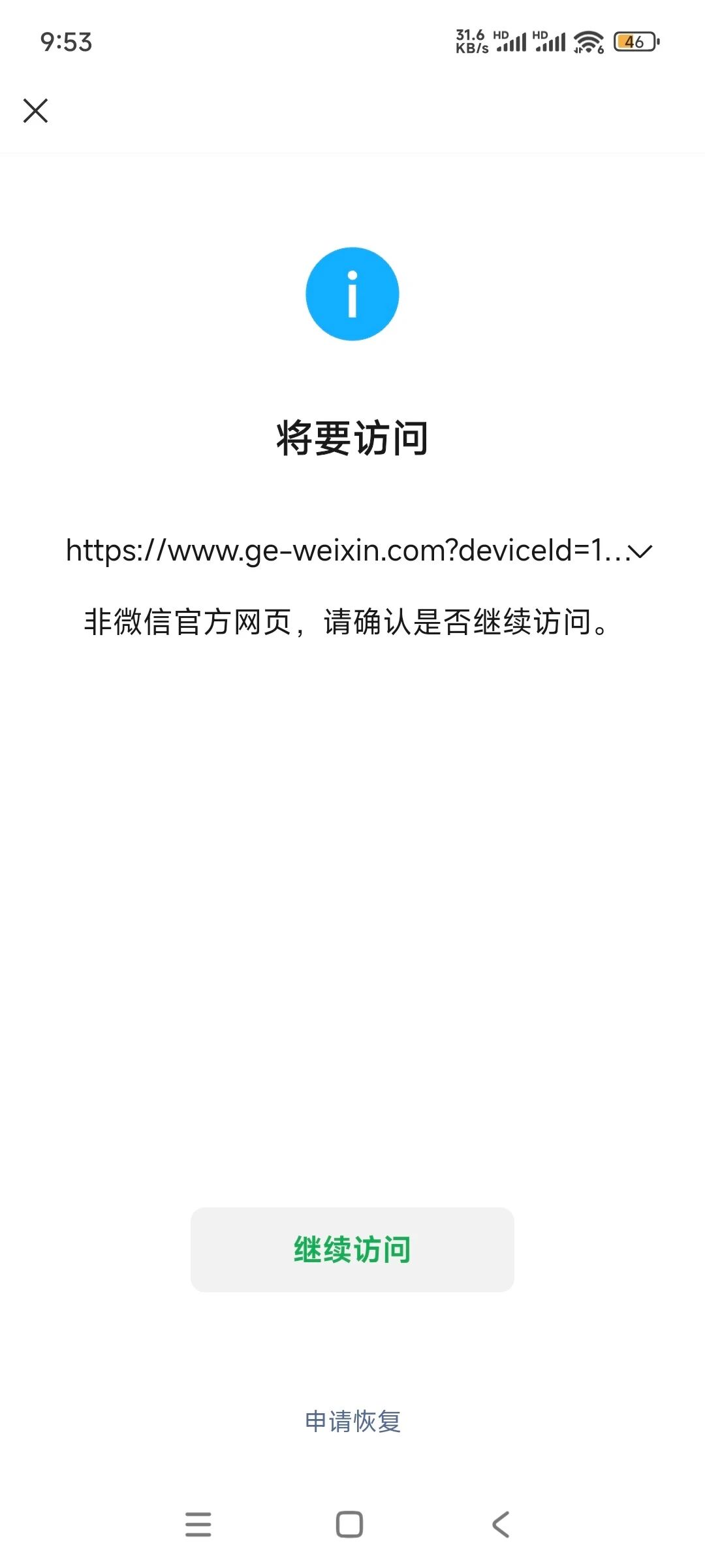 扫普通链接二维码打开小程序,提示非微信官方网页