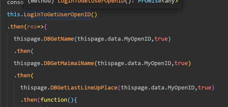 如图,我有如下四个promise堆叠,第一个工作是正常的,而第2、3、4个都是不正常的,这三个都使用了wx.callfunction,结果在console中可以看到第一个调用彻底完毕后第2、3、4个都被同时调用(这三个都会在被调用时log出数据库指令和返回结果)。在开发文档中,callfunction可以使用promise,但是promise使用的结果却是云函数没有返回值便开始下一个函数运行。我现在不知道该怎么管住这几个callfunction,难道需要我写一个用来检查这几个云函数是否全部返回值的函数吗???(/吐血)