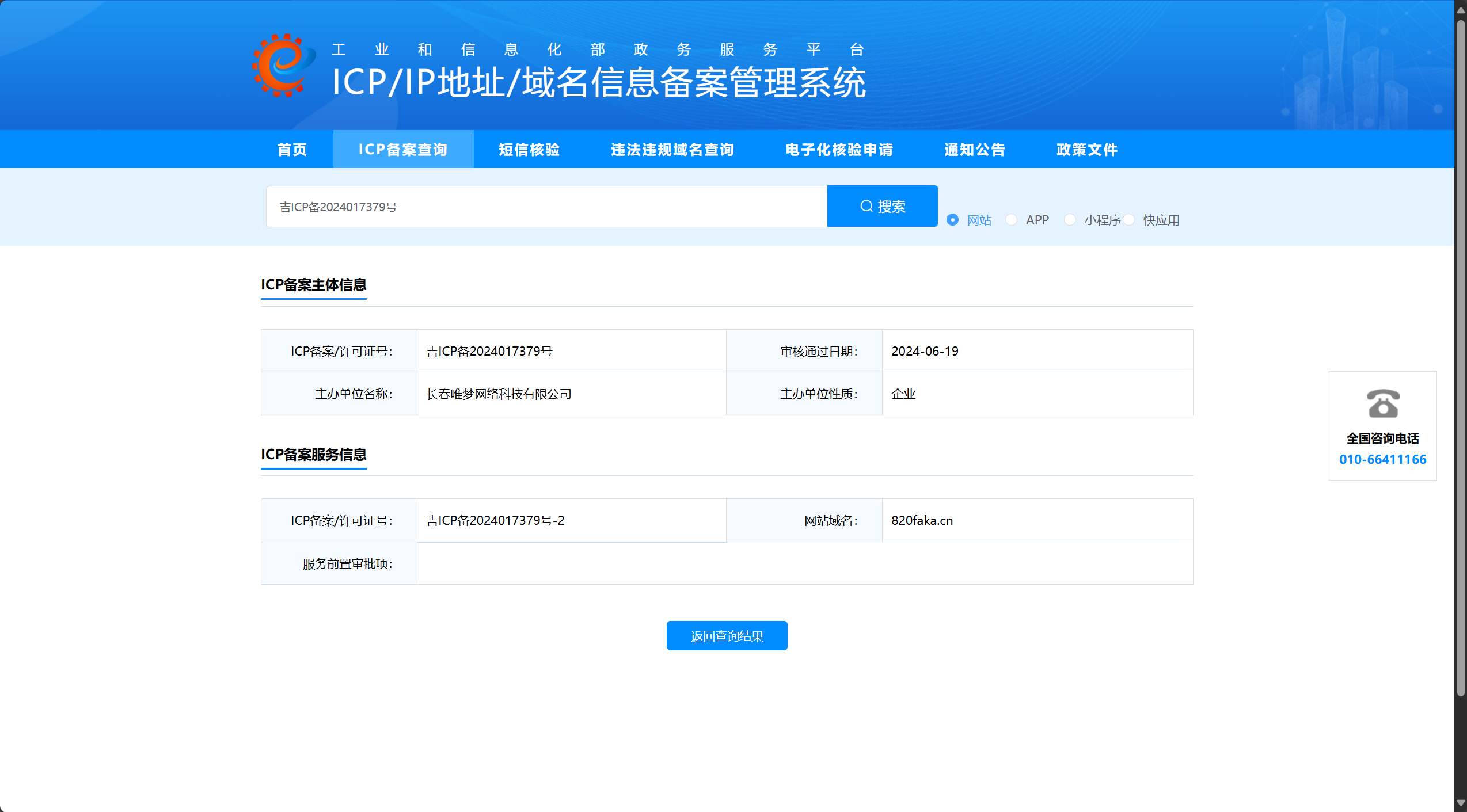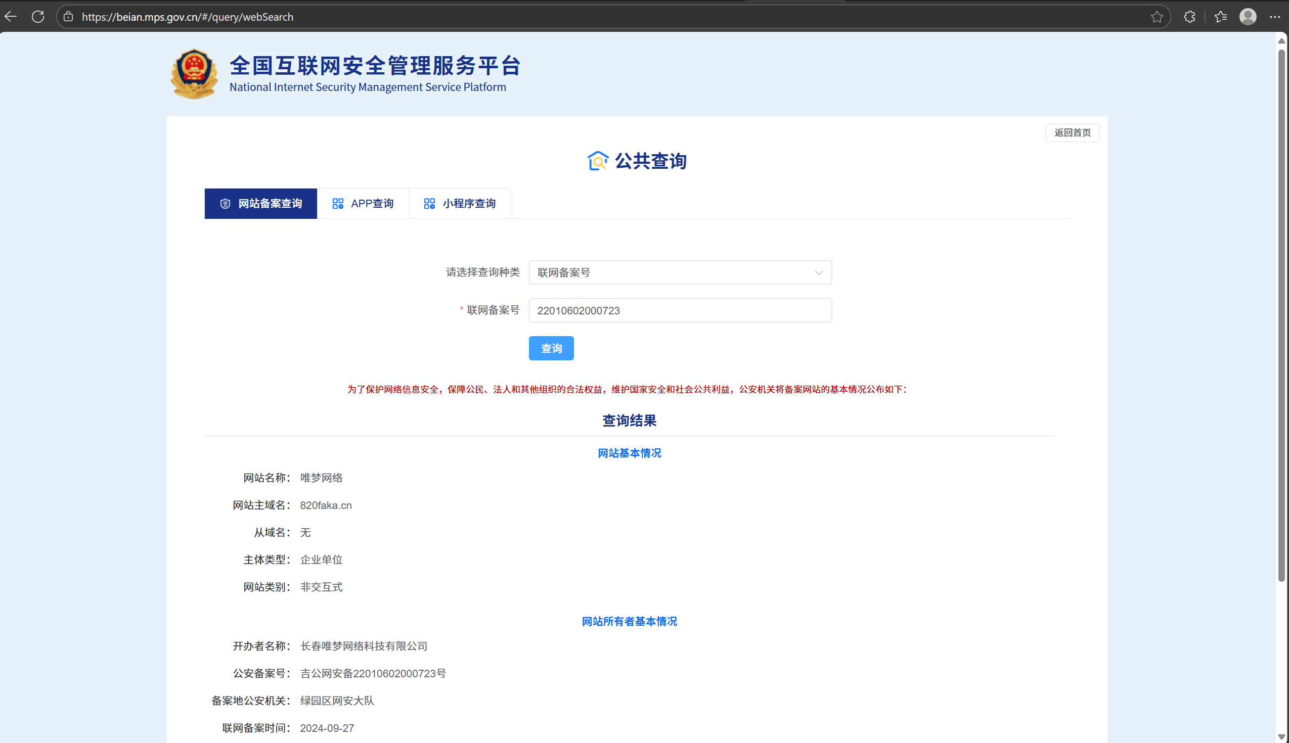 网站的备案: