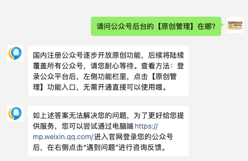 但是看了一下公众号菜单栏,还没有【原创管理】: