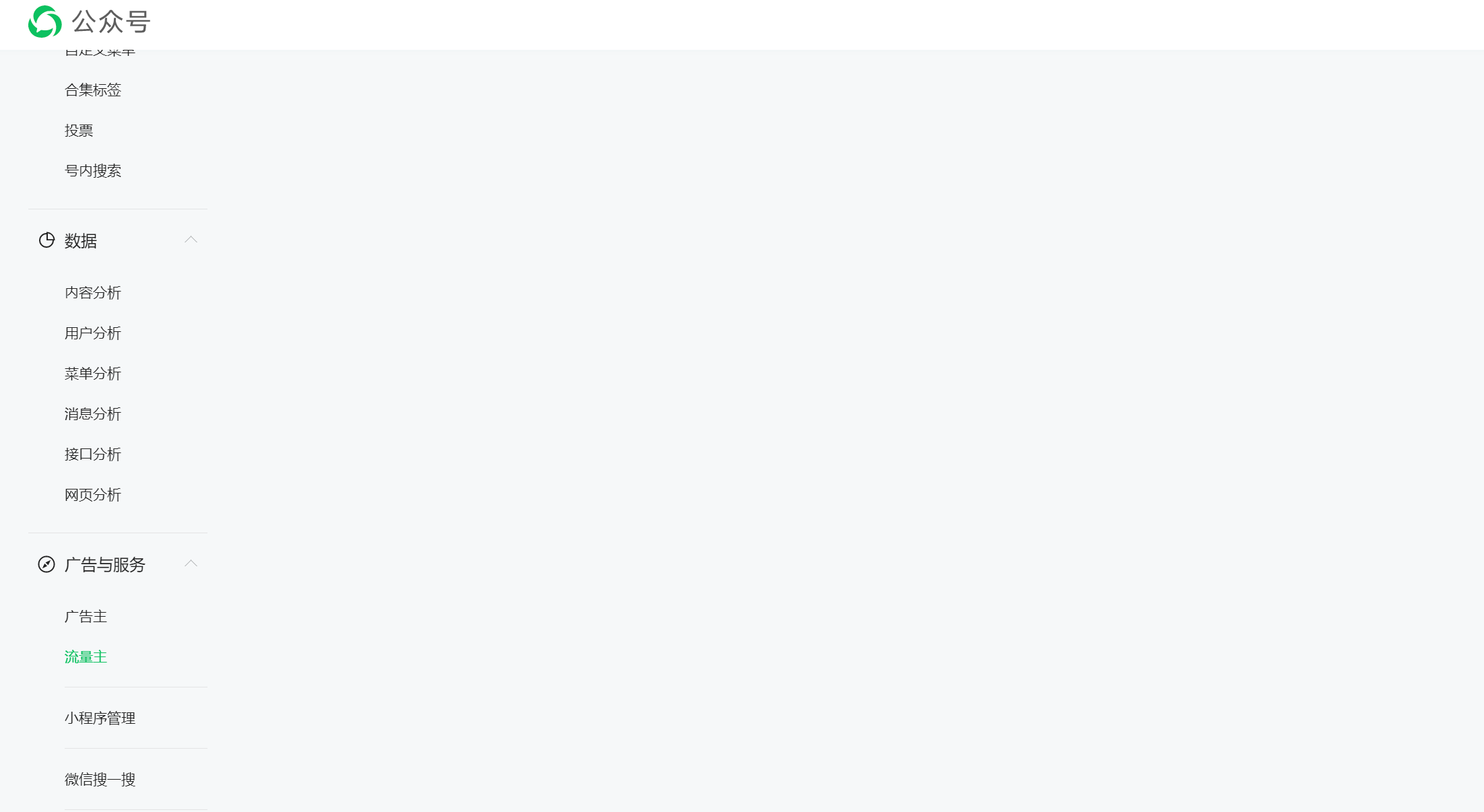 公众号流量主和广告主页面突然就变成空白了,啥也看不到;公众号文章里面插入的广告也没有了,是你们后台私自给我下了吗?方法都尝试了,浏览器无痕模式、清理缓存、下载使用新的浏览器都不行,网络换成5G也不行。。。