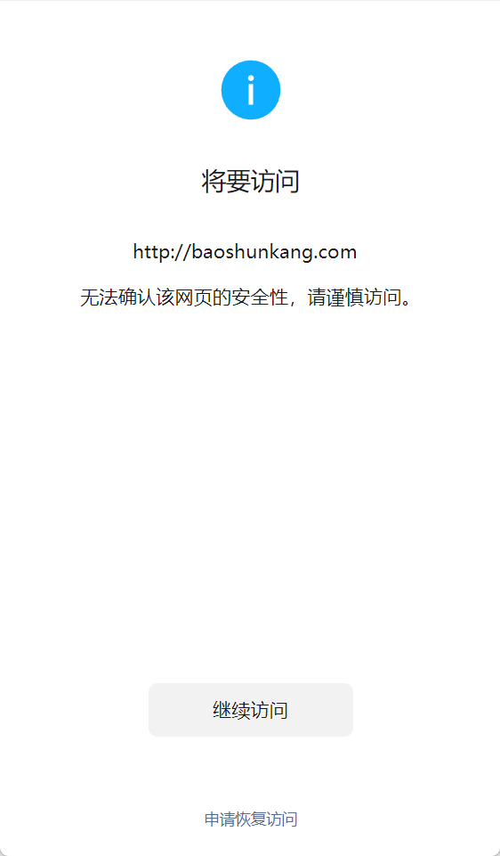 该域名已完成备案,也没有不安全的内容,申请恢复微信内的直开权限,去除继续访问