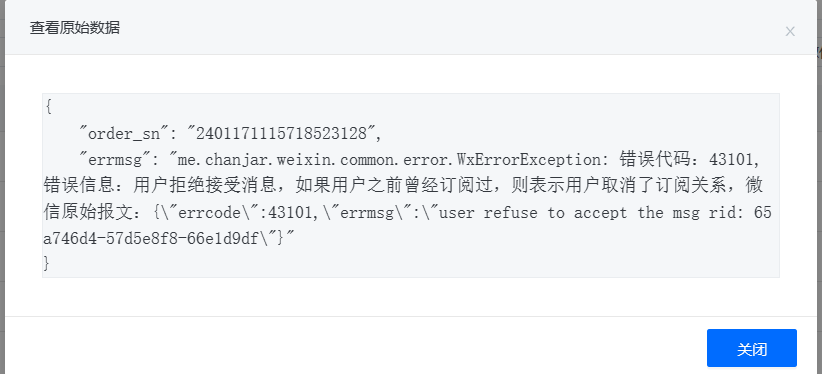 重新打开消息推送,仍然收不到消息,打印日志有报错,这个错误是微信返回的错误吗
