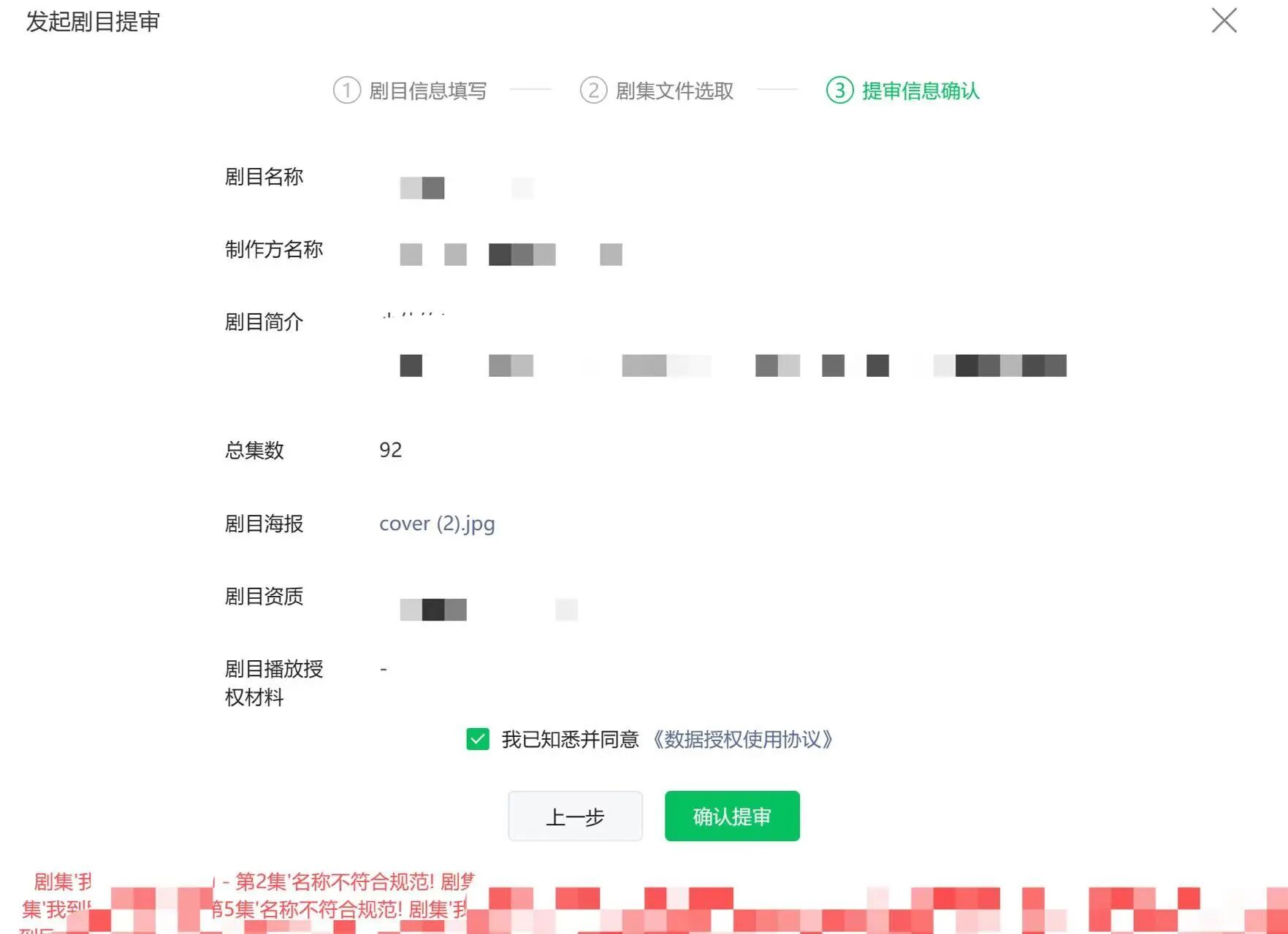媒资管理,我按照上传的名称 XXXX - 第2集 ,可是提交总提示: