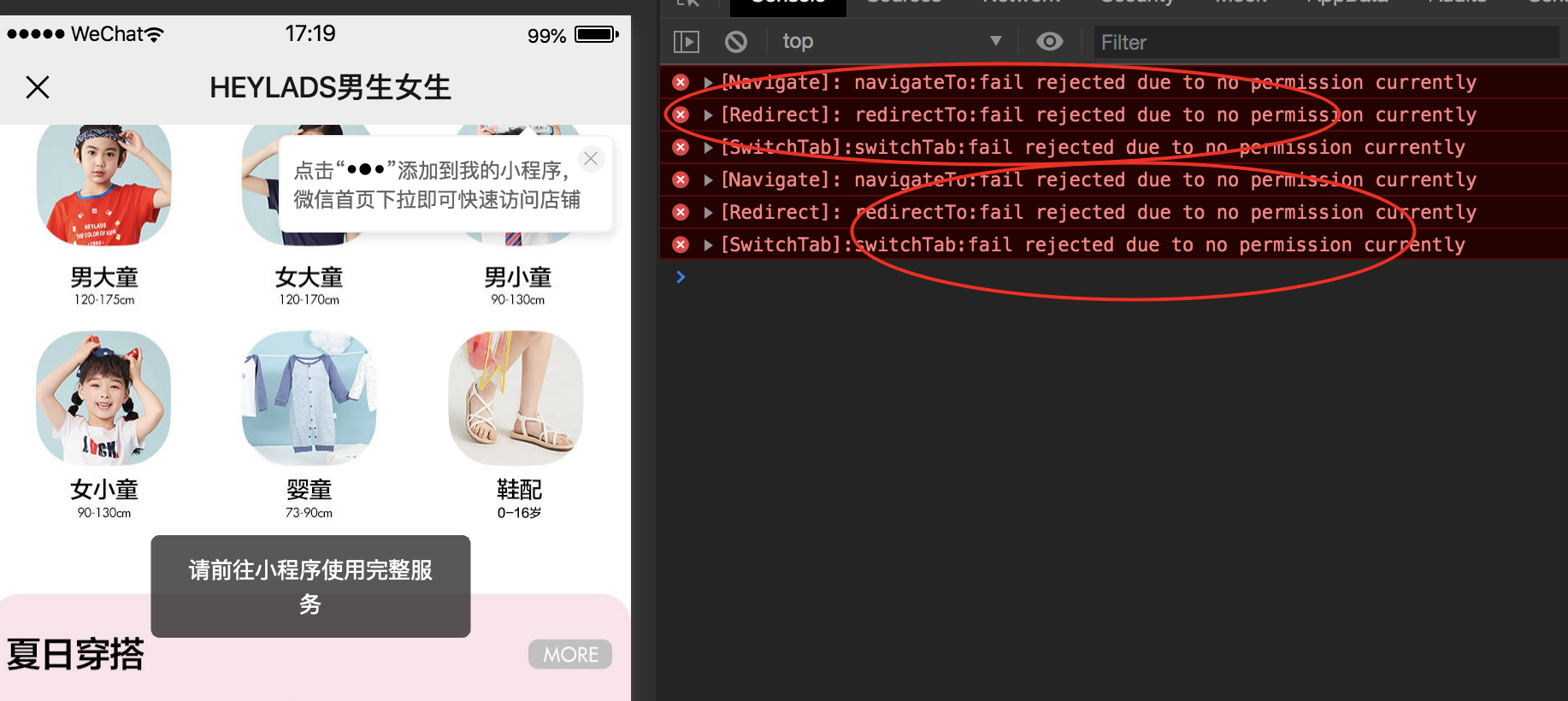 点击朋友圈的小程序后,点击有的会弹出“请前往小程序使用完成服务”,有时又会弹出“跳转失败”?