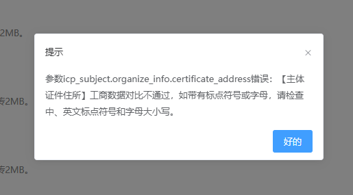 提交显示工商地址信息错误,但是我拿着营业执照对比地址信息是正确的,同时也没有变更过地址,请问这是什么原因?需要怎么解决呢?