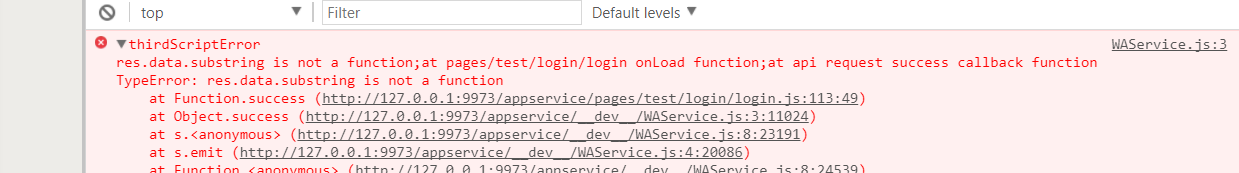 我在一个按钮的功能里面调用res.data.substring()是可以用的如图一,但是我在本界面的onload中再次以同样的方法调用res.data.substring()如图二却出现如图三的报错