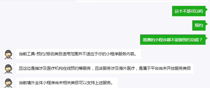 为澳门的一个诊所开发了预约的小程序,在审核的时候说服务类目不符合,我选择的是工具-预约类目,要怎么才能符合呢?