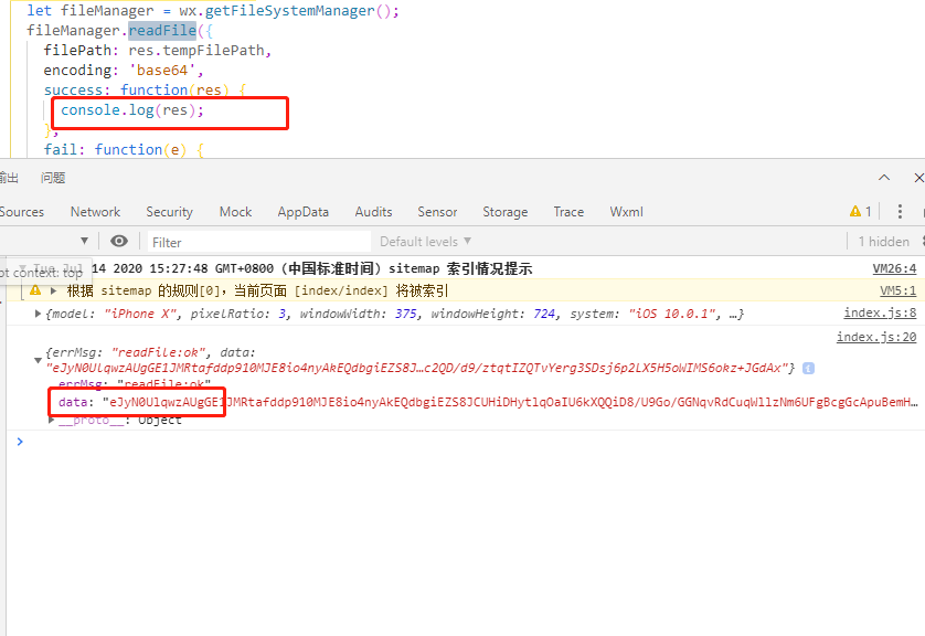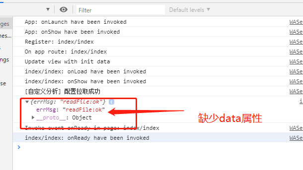 但是使用pc端readFile是会成功。但是data不见了。如下图