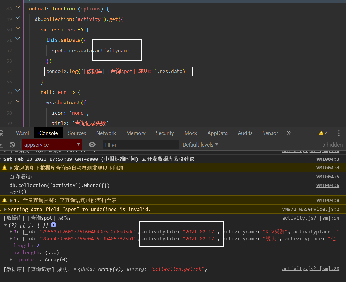 如果是res.data[0].activitydate就可以,但是只能获取第一条。