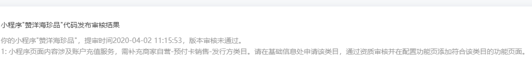 我们正常制作电商行业的小程序,小程序里会包含充值或者储值金的功能,提交审核的时候有时候会提示需要补充类目:充值-预付卡销售类目,但有时候又没有这个提示,小程序是直接过了,所以现在有点懵逼,不清楚你们审核是根据什么审核,每个人审核的条件都不一样,不清楚这个类目到底是要还是不要。有时候审核直接过了,有时候就被驳回。