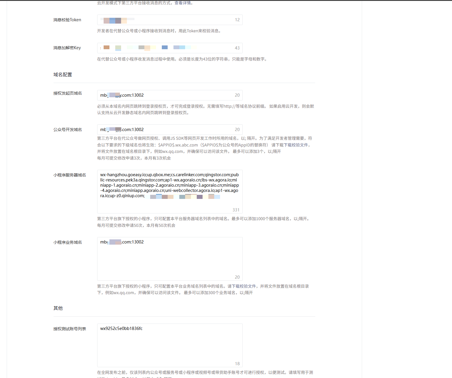 你好,请参考https://developers.weixin.qq.com/community/develop/doc/0000a423770ed0c6d80323d6c6b009排查,目前是在配置业务域名吗?1.只支持主域名,例如https://www.qq.com,不支持主域名之外的任何字符