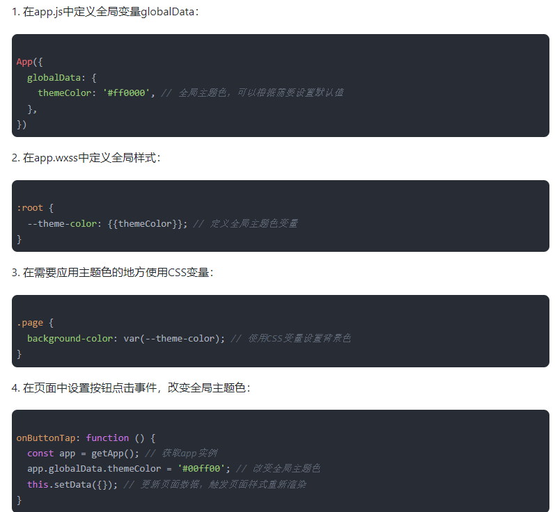 接收后台主题色色值后,动态修改小程序全局样式。