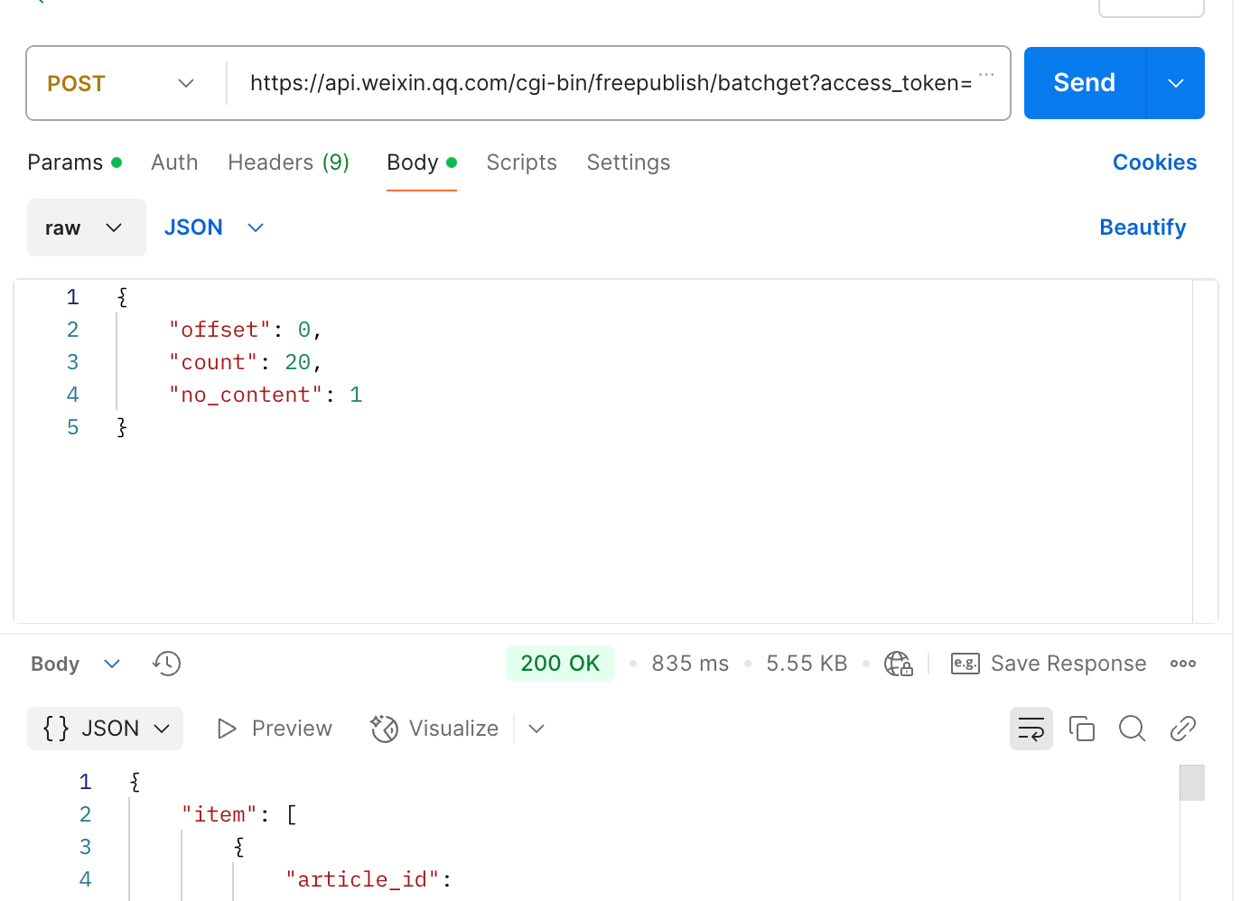调用的方法不对。offset和count是使用post的方式放在body里的,你放到query里了。