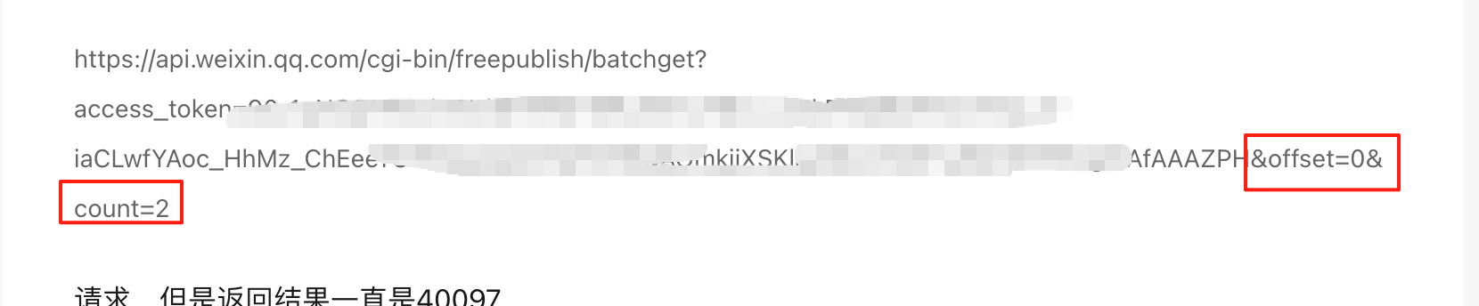 请求,但是返回结果一直是40097
