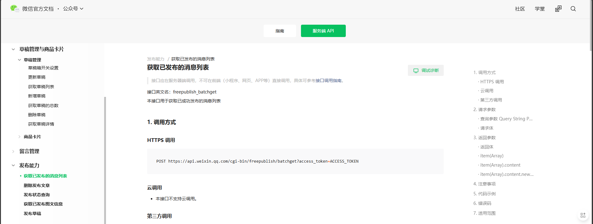 这个接口只能返回已发布(非群发)的文章消息,不能返回已发表(群发)的文章消息。