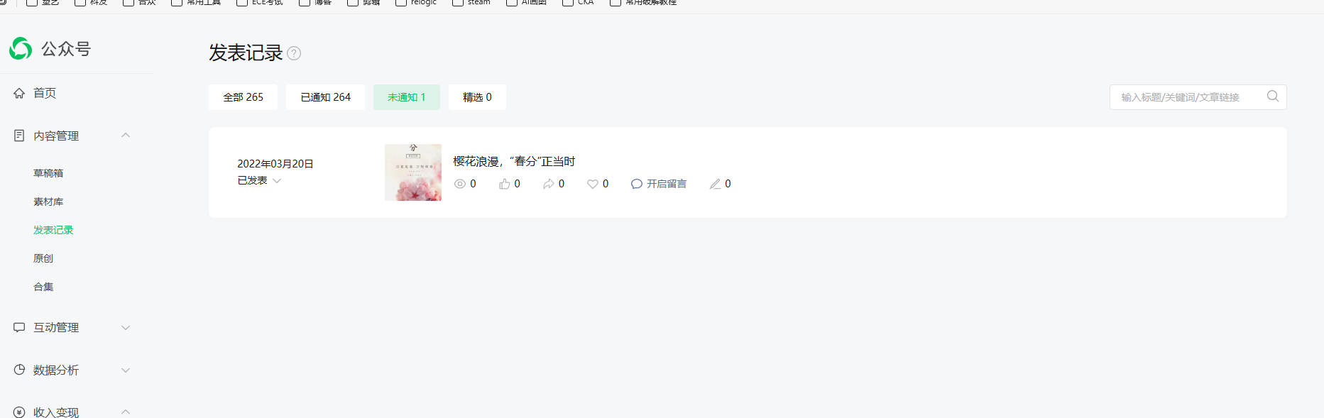 调用已发布消息列表接口,只返回了未通知这一条数据,而不是其他的那264,或者265条数据