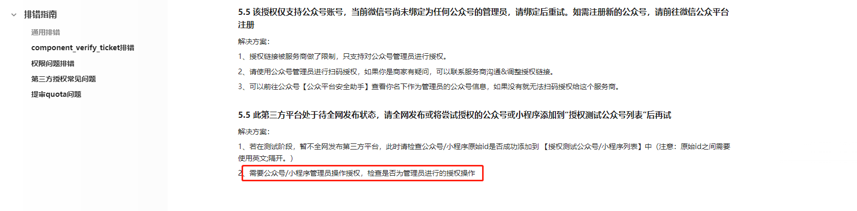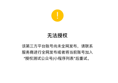 你好,是否是对应账号管理员扫码操作的?https://developers.weixin.qq.com/doc/oplatform/Third-party_Platforms/2.0/troubleshooting/authorization_troubleshooting.html#%E4%BA%94%E3%80%81%E5%95%86%E5%AE%B6%E6%8E%88%E6%9D%83%E6%8F%90%E7%A4%BA%E6%97%A0%E6%B3%95%E6%8E%88%E6%9D%83%E3%80%81%E6%97%A0%E8%B4%A6%E5%8F%B7