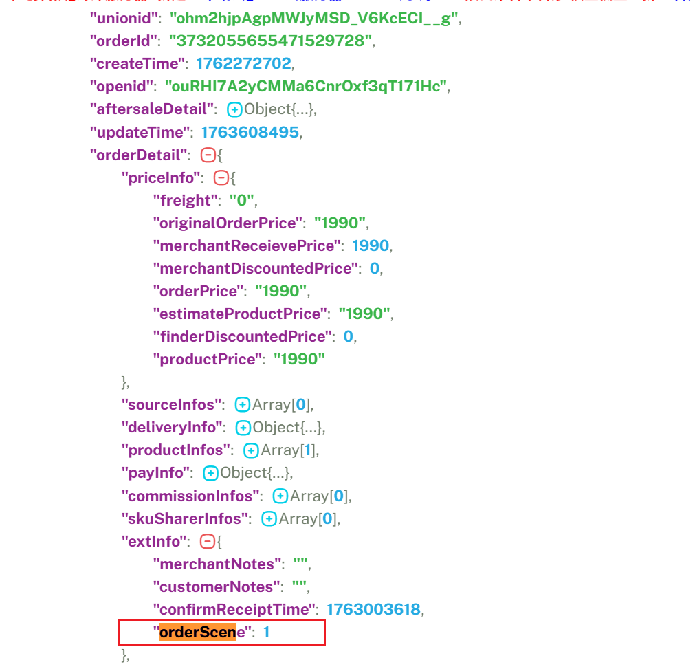 3732055655471529728,3732061194210132736,3732061217006950912 这三个订单的订单详情接口中,下单场景字段 =1 (其他) ,但是这三单是短视频带货方式下单的 ,请问怎么回事,以及还有什么别的字段区分下单场景