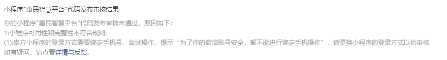 你好,经核实,贵方小程序:1.【推荐-发帖】需使用手机号码注册才能体验,输入手机号码,点击获取验证码无响应,功能无法完整体验,请修复;2.【首页-发帖-本地贴吧】涉及用户自行生成内容的发布/分享/交流(如话题/圈子/帖子发布)需补充社交-社区/论坛类目,【首页-发帖-相亲】涉及交友,需补充选择社交-交友类目