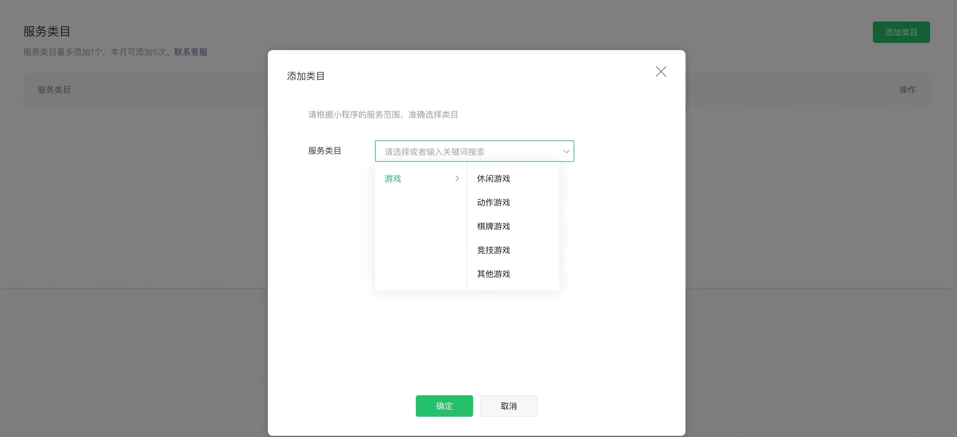 ● 补充小程序类目,小游戏账号只有”游戏“这个类目,无法更换或删除,请勿选择错误,否则只能重新注册。