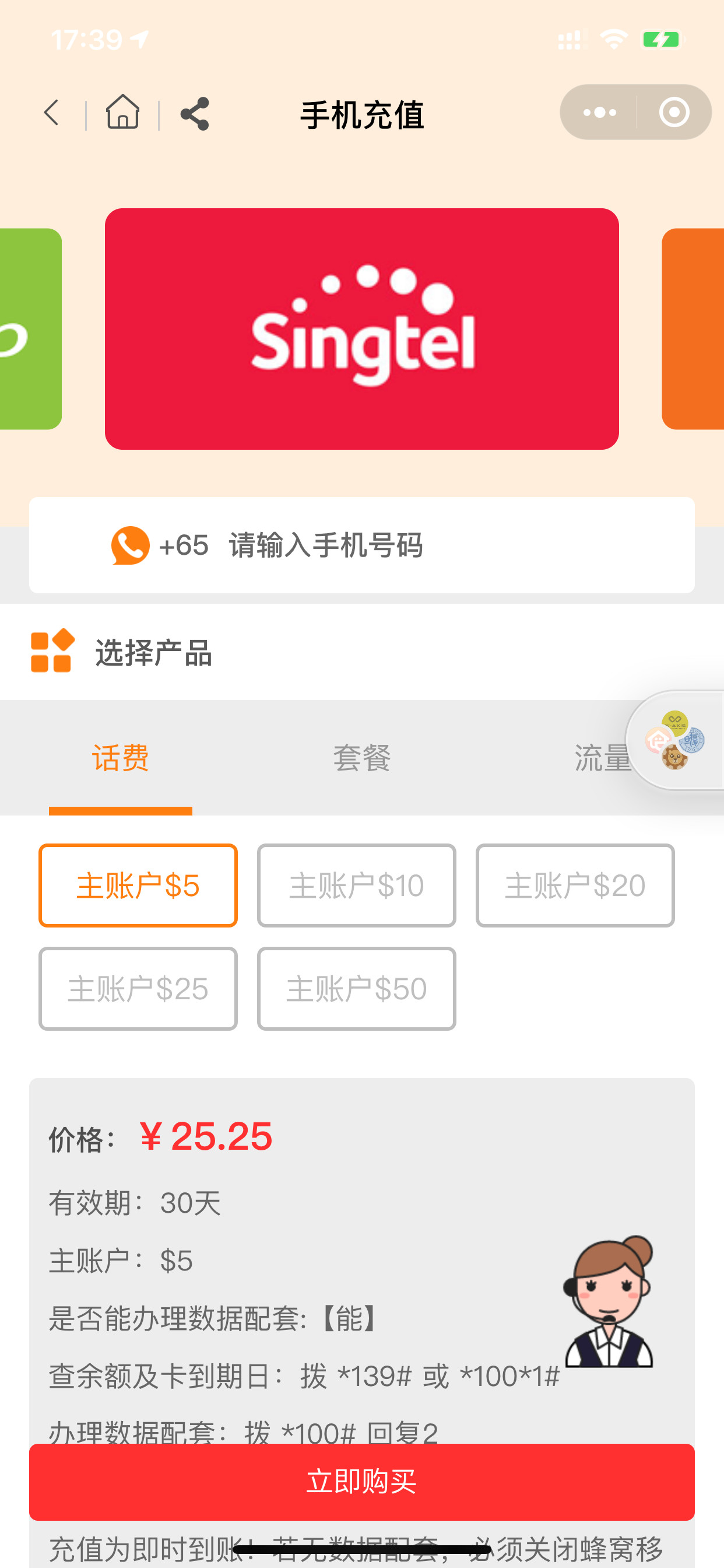 正常运营的海外话费充值小程序信息: