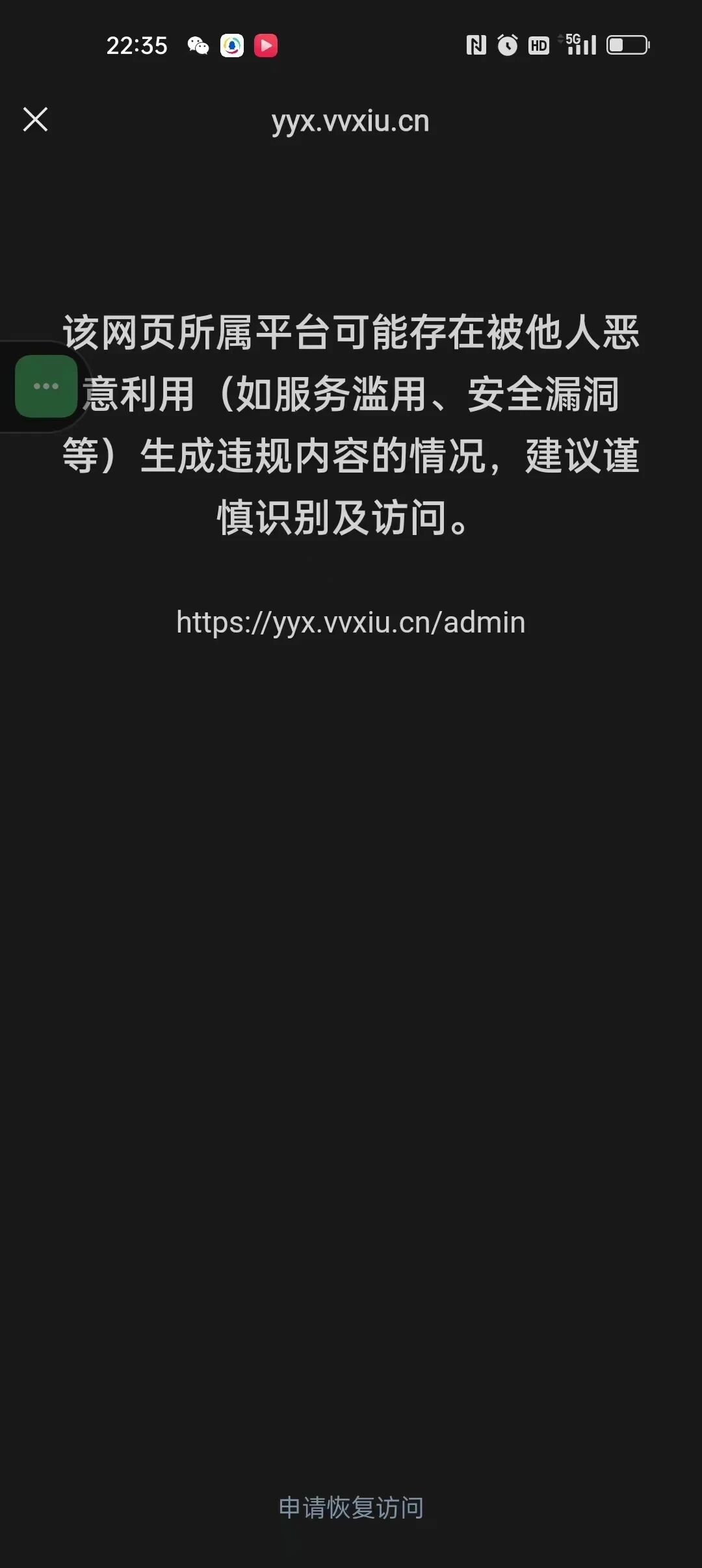 麻烦给看看这个网址有什么问题:https://yyx.vvxiu.cn/admin/