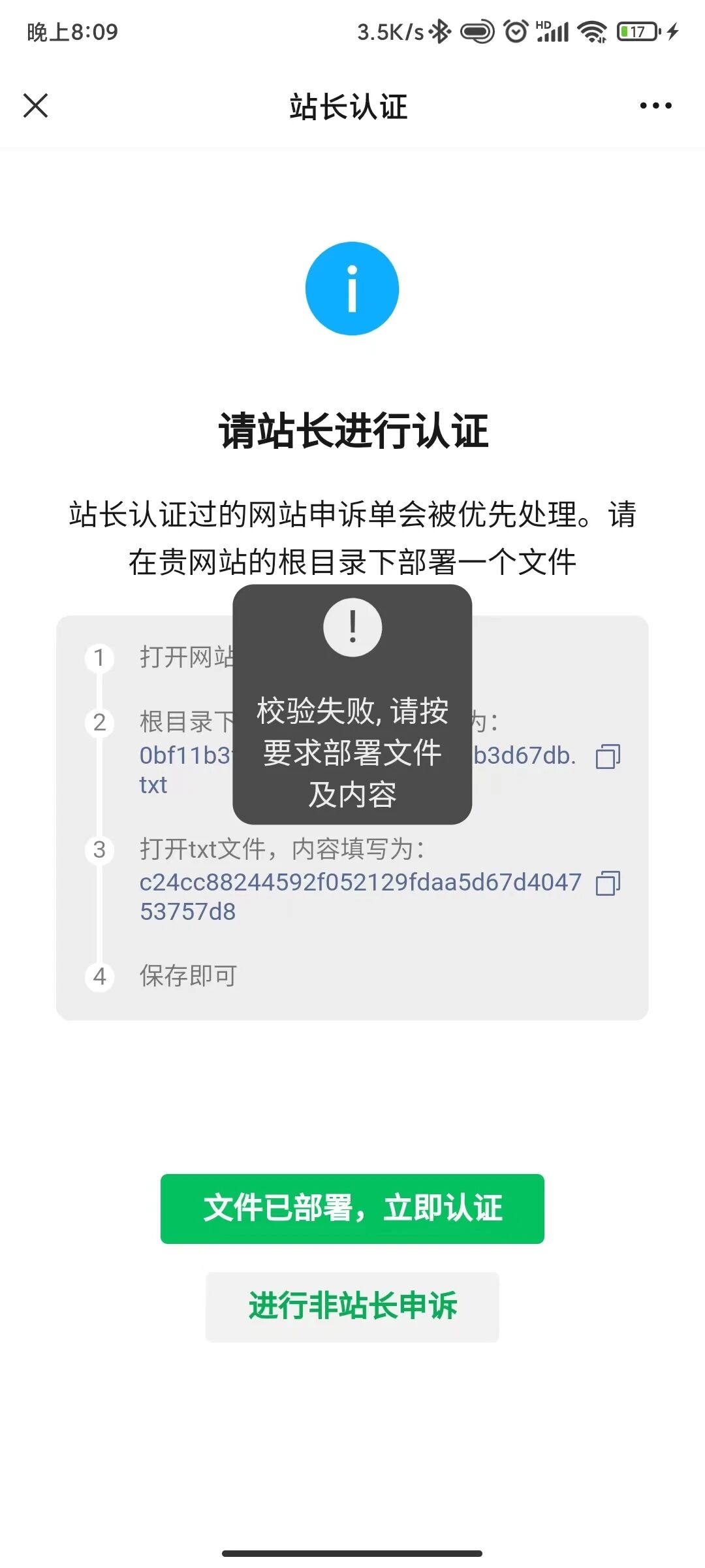 我们申诉,按要求也部署了相关文件,但认证时说未通过