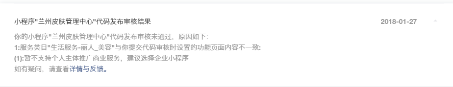首先这个第一次审核未通过的问题:服务类目与你提交代码审核时设置的功能页面内容不一致这个问题能帮我解答一下吗?