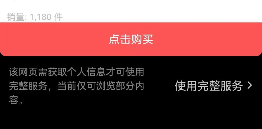 新用户第一次访问下单小程序会被提示“该网页需获取个人信息才能使用完整服务”,如果用户不点击“使用完整服务”,就会无法浏览。