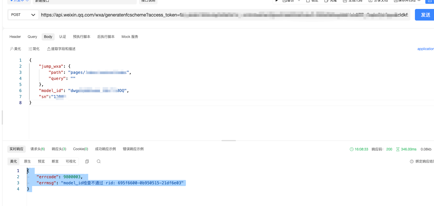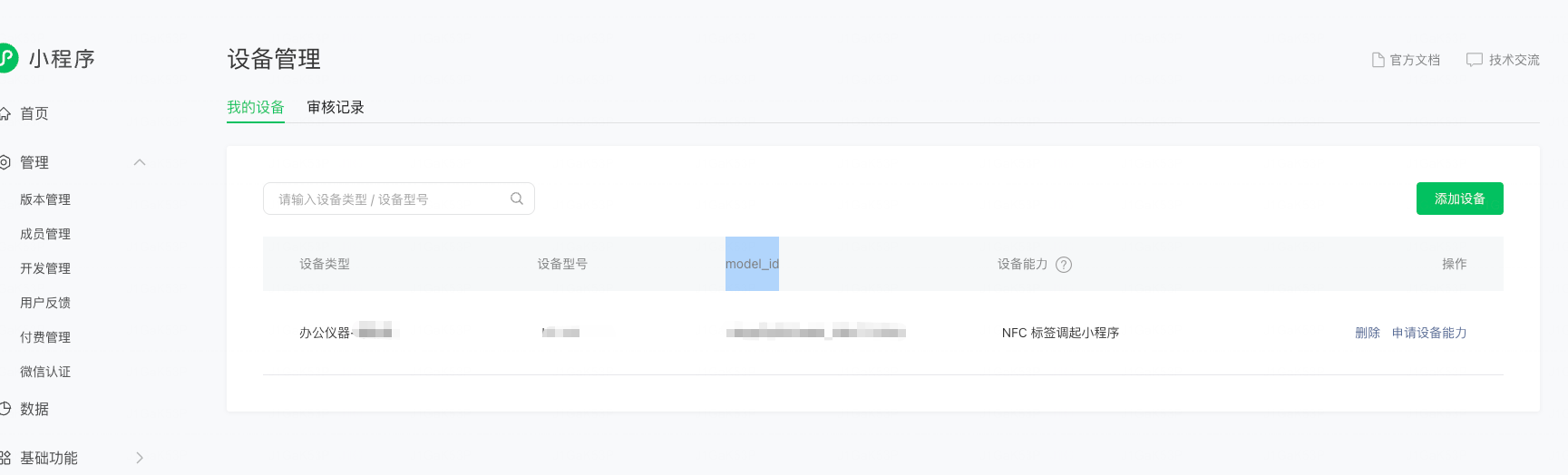 小程序后台已经申请好了权限,也生成了model_id,设备类型是一机一码。