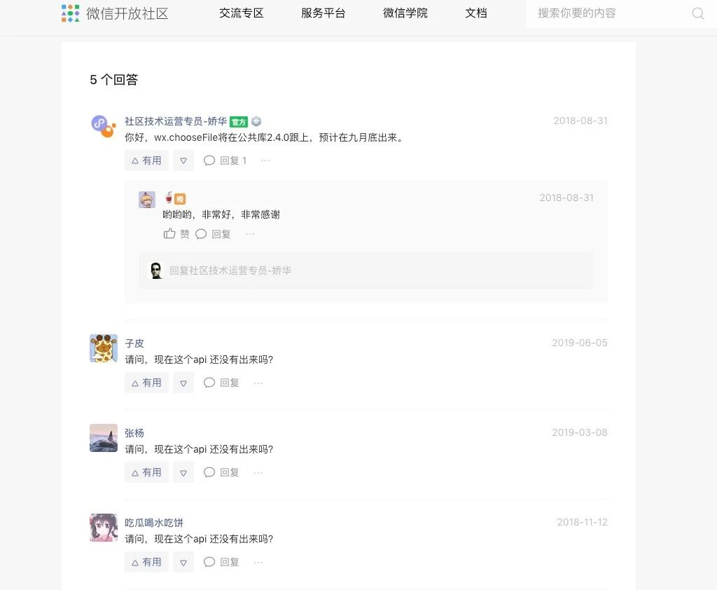 wx.chooseFile选择上传文件,这是一个需求很高的接口,社区已有很多用户反馈这个需求。你们说的去年就出来,结果今年又快过一半了还没出?效率这么高???
