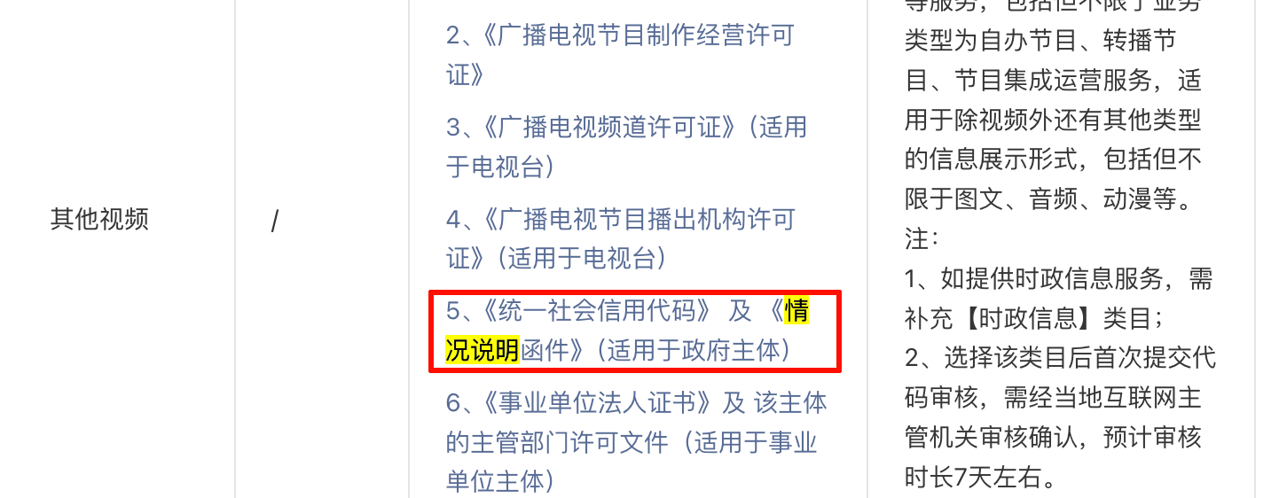 如果是增加文娱-其他视频的类目,情况说明函件的模版可以提供一下吗